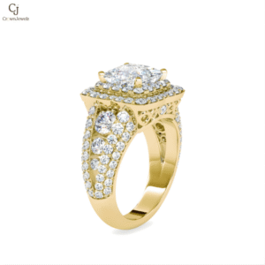 Designed to symbolize unity and devotion, Timeless Embrace features a dazzling center stone enhanced by pavé-set diamonds along the band, offering brilliance from every angle.