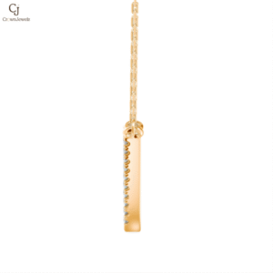 Trinity Spark Pendant displays three luminous round diamonds suspended beneath a sleek golden bar, symbolizing harmony, unity, and balance. The minimalistic silhouette allows each stone to shine, creating a graceful and modern statement of refined luxury.