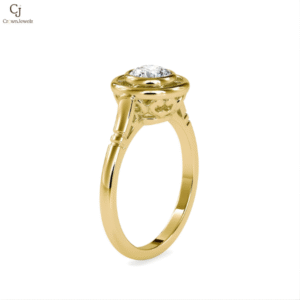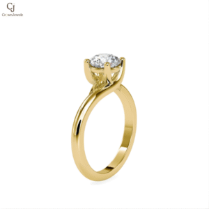 Designed with a graceful swirling band, this ring wraps gently around the center stone, creating a fluid and romantic silhouette. The vintage-style setting enhances the diamond’s sparkle while offering a unique, artistic feel. Ideal for someone who appreciates soft curves and timeless romance with a modern edge.